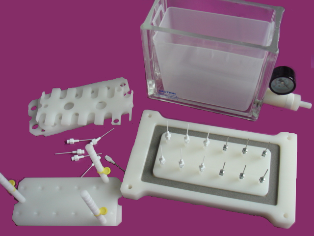 Mediwax固相萃取裝置可實現(xiàn)連續(xù)的樣品萃取和過濾,簡化復雜的樣品預處理過程并節(jié)約時間。整套裝置含有一個透明玻璃槽和頂蓋,可通過抽真空控制樣品流過SPE小柱實現(xiàn)萃取程序。通過調(diào)整玻璃槽里面的支架可容納不同規(guī)格的樣品收集管,包括玻璃或塑料試管、自動樣品瓶、容量瓶以及錐形瓶等,洗脫液通過選擇聚丙烯(PP)或不銹鋼導向針以及防交叉污染的特氟?。?/span>Teflon)連接管直接引入樣品收集管。12位裝置附贈一個聚丙烯(PP)廢液槽,用于操作中收集廢液,可簡化樣品處理過程中廢液的處理以及保持玻璃槽內(nèi)潔凈的環(huán)境。