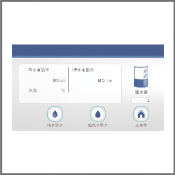 主機(jī)3路水質(zhì)和2路流量監(jiān)控 RO、DI、UP超純水3路水質(zhì)實(shí)時(shí)監(jiān)控,無(wú)需取水即可查看水質(zhì). 2路高精度定量(10-999999ml)、定質(zhì)(0~18.25MΩ.cm)取水功能. | ![]() |