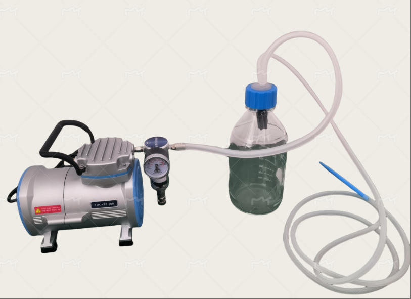 R300-1L細(xì)胞培養(yǎng)廢液抽吸真空泵由ROCKER300無油真空泵,GL45藍蓋試劑瓶,硅膠管,吸管單獨組成,方面拆卸和清理,廢液瓶可以選配2L,3.5L,5L等更大容積試劑瓶。除真空泵外,其余部件都都可以121℃高溫高壓滅菌,