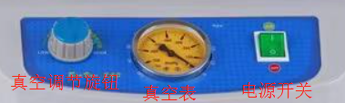 面板介紹(如圖2所示),機(jī)器面板依次為真空調(diào)節(jié)旋鈕,真空表和電源開(kāi)關(guān),電源開(kāi)關(guān)是手動(dòng)控制電源的開(kāi)關(guān),真空調(diào)節(jié)旋鈕可以調(diào)節(jié)真空吸力的大小,指針式真空表直觀顯示真空度。