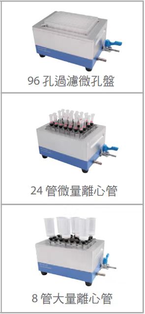 獨(dú)特設(shè)計的離心管轉(zhuǎn)置板以及魯爾(Luer)接頭,讓W(xué)elVac真空純化裝置成為一個高兼容的平臺,適用各種樣式的離心管及96孔過濾微孔盤。